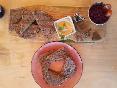 We walked into town down a cobbled main street, weaving between the traditional Portuguese white-washed buildings. Both thirsty and hungry, we found a quaint vegetarian restaurant named Moagem which had a patio that overlooked the banks of the river. The friendly staff warmly welcomed us in and soon had us enjoying a couple of Black Hole stouts (a beer made in Lagos) a wonderful cheese plate, torrinada toast, and several flavours of hummus.